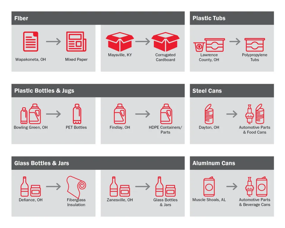 Based in the Midwest, Rumpke is poised to partner with end users right here in the heartland. In fact, more than 80 percent of the materials that Rumpke collects and processes for recycling go back to companies in Ohio fueling local jobs, payroll and tax revenues to further bolster local economies.