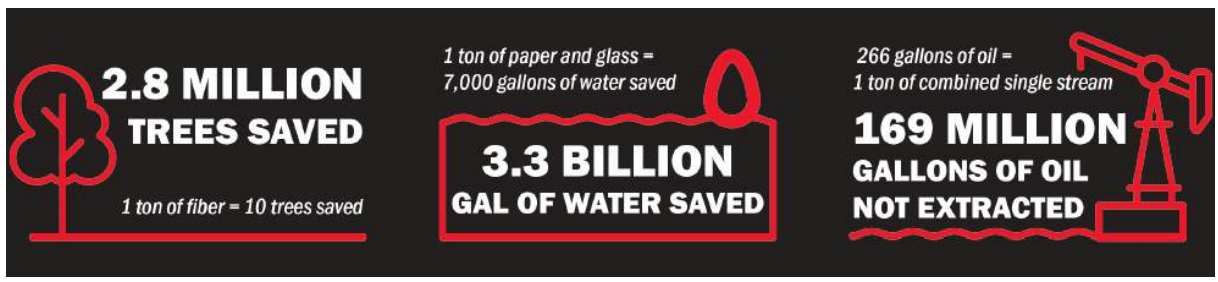 In 2024, Rumpke processed about 635,000 tons, or 1.3 billion pounds, of recycling from residential, municipal, commercial and industrial accounts. To accomplish this, Rumpke achieved an 89.25% overall recovery rate. We did this through investment in innovation and expansion of acceptable recyclable items. In 2021, Rumpke made polypropylene tubs acceptable, in 2023, aluminum, paper and plastic cups acceptable, and in 2024, Rumpke began accepting thermoform clamshell containers throughout Central, Southeast and Northern Ohio.